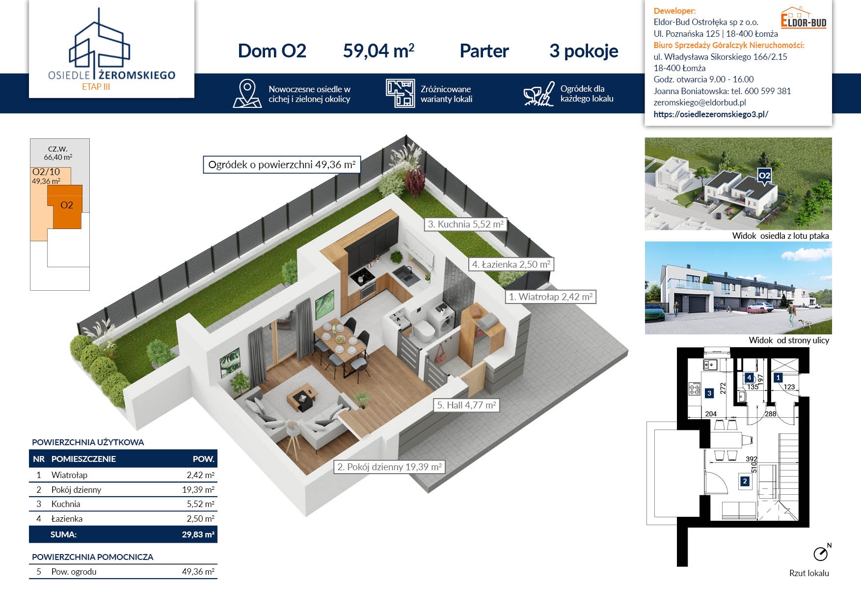 Osiedle położone jest z dala od blokowisk i blisko natury. Dzięki terenom zielonym można cieszyć się zdrowym klimatem oraz czystym powietrzem o każdej porze roku. Budynki wyróżniają się nowoczesną, miłą dla oka architekturą. Mają duże okna, dzięki czemu o każdej porze dnia do wnętrz wpada mnóstwo naturalnego światła. Osiedle Żeromskiego jest znakomitym miejscem dla rodzin z dziećmi, młodych par oraz seniorów. Można znaleźć tutaj nie tylko codzienną wygodę, ale i atmosferę, która sprzyja realizowaniu swoich planów. Wszystkie domy wyróżniają się przemyślanym układem pomieszczeń, zapewniającym domownikom przestrzeń do odpoczynku, pracy, nauki czy zabawy.