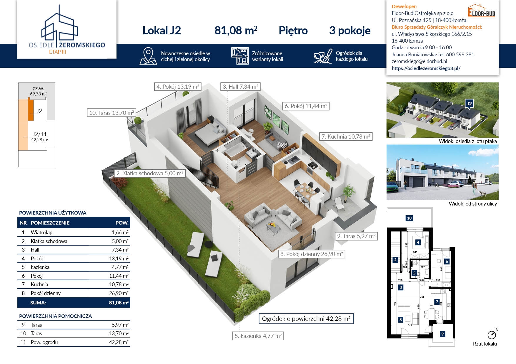 Osiedle położone jest z dala od blokowisk i blisko natury. Dzięki terenom zielonym można cieszyć się zdrowym klimatem oraz czystym powietrzem o każdej porze roku. Budynki wyróżniają się nowoczesną, miłą dla oka architekturą. Mają duże okna, dzięki czemu o każdej porze dnia do wnętrz wpada mnóstwo naturalnego światła. Osiedle Żeromskiego jest znakomitym miejscem dla rodzin z dziećmi, młodych par oraz seniorów. Można znaleźć tutaj nie tylko codzienną wygodę, ale i atmosferę, która sprzyja realizowaniu swoich planów. Wszystkie domy wyróżniają się przemyślanym układem pomieszczeń, zapewniającym domownikom przestrzeń do odpoczynku, pracy, nauki czy zabawy.